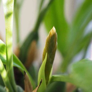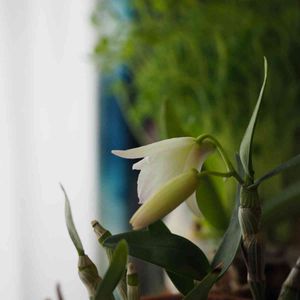 名前不明ですがシンビジュームがほころびました。 花弁が丸くない花の形が好みだったので完全に咲くの楽しみ😊 芽かき等、色々調べました。 毎年咲いてくれるようにお世話に励みます🙋