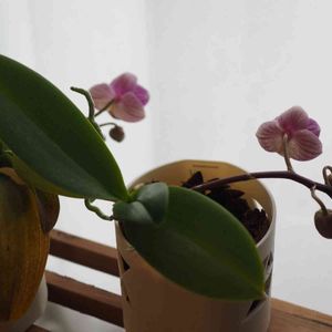 シンビジューム。 可愛く咲きました♪ 次はミニ胡蝶蘭。 まだまだ硬い蕾ですけど3株の花芽は順調順調😅