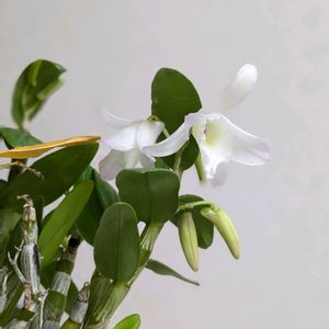 デンドロビウム開花♡ 白く清楚で美しい 高芽から頂いて数年😊 さっそく頂いた方へ報告♪