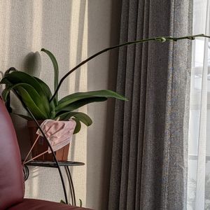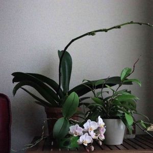 もうそろそろ咲きそうです このサイズは良いが引っ越し時、大輪胡蝶蘭の花茎50センチ越えを運ぶのどうしよう😮💨と思ったら寝られませんでした。