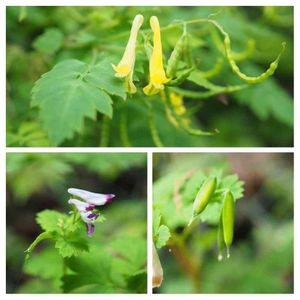 ミヤマキケマン↑ ムラサキケマン↓ 花と果実の様子です。
