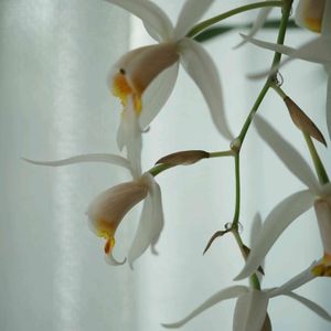 セロジネヒュットネリアナ全体像♪ 蕾全て咲き揃いました😊 次の花芽がいきなりあがって来ました♪♪♪ 嬉しい😍