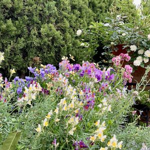 今日の庭から…① 10:30〜11:52 パンジービオラの寄せ植えが終わり 一息入れたいところですが 次は球根 庭のミニバラ ❶❺ 今 力強いパンジーヴォーグが主役❸❹ 🏷️金曜ローズショー