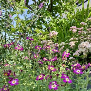 金曜から木曜日までの庭 1週間があっという間! 今日庭を彩っていたパンビオの 代わりを探しにホムセンへ.. 入荷したばかりのハイビスカスの中に ケイトとデニムブルーがあった♪ クレマチスキリテカナワと撮れたら イイナ♪