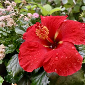 今朝の庭から… 9:14〜9:33 虹のように咲かせたい〜♪ 1️⃣ レッドレオナルドダヴィンチ 2️⃣ ミニバラ ハートフォーユー 3️⃣ ハイビスカスとミニバラ 4️⃣ アジサイ アポロン 5️⃣ ペチュニアとクレマチス 今朝 ハイビスカス. クリスタルピンク(冬越し)咲く 🏷️虹の日