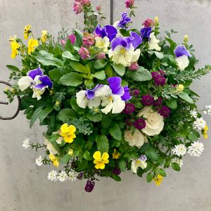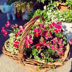 バスケットに寄せ植えしました♪💖 ネメシア、ビオラ、ミントなど、赤系で 春には溢れんばかりになってるといいなぁ〜😊😊😊