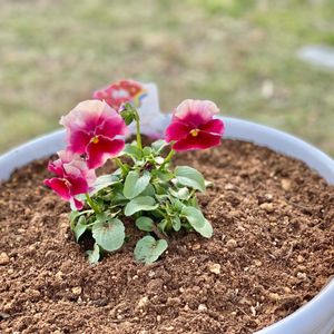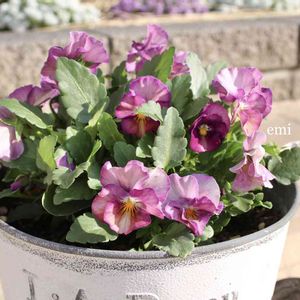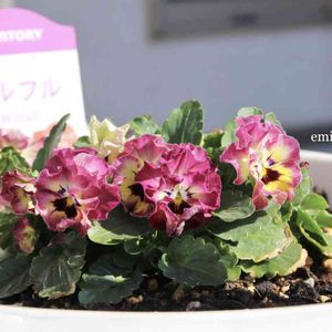 記録 木製プランターにも定植しました🥰 ビオラ ペニー マリーナ 3株 この後少し✂️しました♪