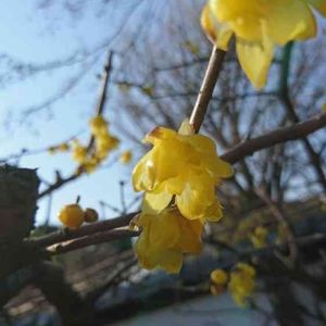 ロウバイ(蝋梅) 甘い強い香りに誘われて見上げたら、ロウバイが咲き始めていました。何種類かありますよとGSで教えて頂いてたので、何でしょ?と調べて見ると…。全体が透明な黄色の´素心蝋梅´のようです🍀この香りの香水もあるようで、探してみようかなと思ったりしてます🤗
