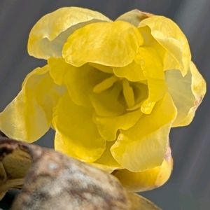 昨日、ソシンロウバイ (素心蝋梅)と出会いました。 ソシンロウバイは中国中部を原産とするロウバイから派生した栽培品種の一つで、日本へ渡来したのは明治時代だそうです。 「ソシン」は「素心」あるいは「素芯」で、(園芸の世界では)花びらが芯まで同じ色であることを表し中央部も含めて花全体が黄色くなる特徴からその名がついたようです。 『🏷️太陽がくれた季節a』 『🏷️心にメローイエロー』 『🏷️葵い空』
