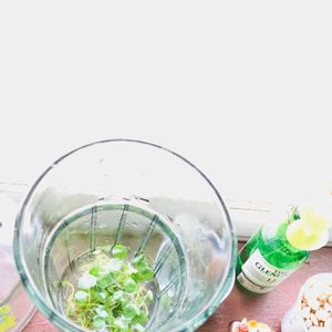 窮屈になったので植え替え。 底に穴のないガラス鉢。 今までも穴のない蕎麦猪口やったから大丈夫と信じてる!