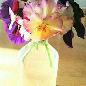 ビオラは、花器にさしても楽しめますね(❁´◡`❁)*✲゚* ←とは言っても、不要の醤油入れに花を挿してますから~((*´艸`))💠