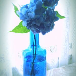 外は雨 旬の紫陽花を部屋にも 青でコーディネート