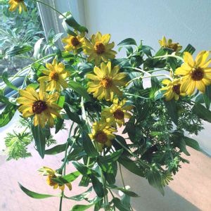 寄せ植えのお花を 切り戻しました💐 西陽が差して暑そうだけど がまんしてね〜 撮影が終わったら ブラインド 下すので…