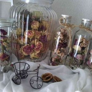 おはようございます 自然乾燥した薔薇~ せっせっせ~と 色が綺麗なうちに 瓶に詰めます~ ※。.:*:・'°☆ 玄関にリビングに 寝室にも~たくさん (///ω///)♪