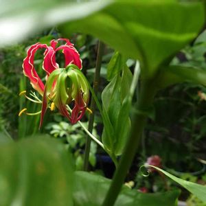 イヌサフラン科グロリオサ属 (ユリ科??) 早朝の ~グロリオサ~ 別名 ユリグルマ. キツネユリ