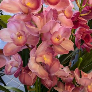 今日は暖かい日でした。 喫茶店のホールの片隅にて シンビジューム