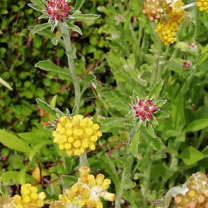 ハハコグサと、ハハコグサに似たピンクの花の野草🎶。 ウスベニチチコグサでしょうか? 先端に集まった花は、ハハコグサより小さ目ですが、ピンクの色は鮮やかです💕