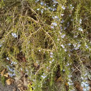 《ローズマリー》でした。 教えていただきありがとうございます👍️ 先程のお洒落な喫茶店のお庭に咲いていたお花。 ラベンダーに似ているような(ラベンダーの香りがしなかったような)気がしますが、違う植物でしょうか❔ 花も疎らでしたし😢