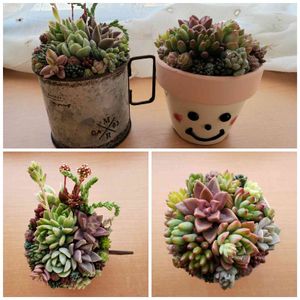 5月に寄せた子達、何もお世話しなかったらほとんど姿に変化なし😁 庭にあった南天の実を挿したら、クリスマスのオーナメントみたいで可愛くなった♡