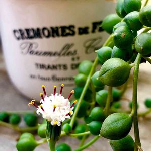 ♡happy Valentine day♡ 今日は、ぽかぽかで絶好の多肉日和でした🌵 久しぶりにベランダに出て、植え替え作業しました😊 picは、グリーンネックレスのお花🌸 今までじっくり観察した事がなかったのですが、小さな白い花が集まって意外と可愛くて、見惚れてしまいました😍