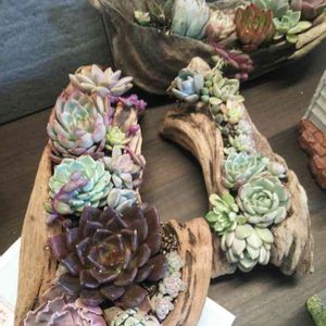 仕事休んで多肉寄せ寄せ。。。 素敵な感じの流木アレンジができた〜たくさんできたからヤフオク出そうかと思ったけどどれを手放すか迷うなぁ(;´Д`)