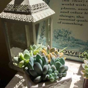 ikuraさんに作っていただいた寄せ植え無事届きました:.* ♡(°´˘`°)/ ♡ *.:私好みの白汚しバージョンにしていただいて感激😆💖そして私の好きな子達が勢揃いしてました😊💕ウットリし続けています(❤,,• ₃ •,,❤)ikuraさんありがとうございます🎶おまけのミニサインボード雫ちゃん💧💖他の子と組み合わせて使わせていただきます😘❣️