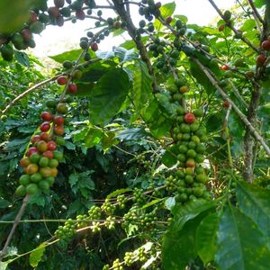 色づき始めたコーヒーの実。 1ヶ月位で収穫するそうです。 ここのコーヒーはオランダに輸出するとか。世界は広いようで意外と狭いのかも。