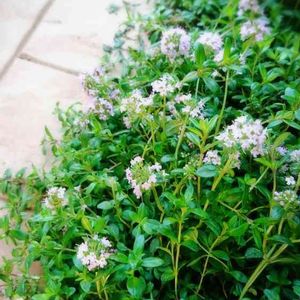 こんにちは☀ 葉や茎が地面を這って小さい花が咲きました 葉には爽やかな芳香があり、触れると香りが広がります