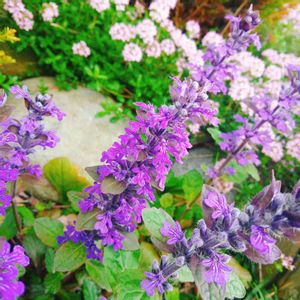 こんにちは☀️ お花も葉も楽しめるハーブ🌿 葉や茎が地面を這う形で広がりました 小さい可愛いお花が咲き アップして📷で見てビックリ お花のまわりには🦀さんの爪みたいなのが…‼️