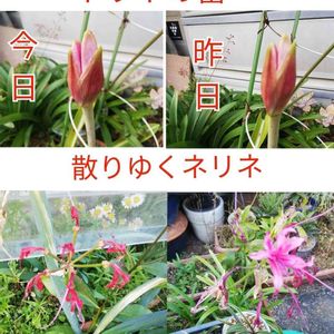 おはよございます🤗 今朝はと言うか昨夜から、スゴイ霧で真っ白けでしっとりの奈良の朝です。 久々に「今日のお花」を投稿💪って思ったけど・・・ 家のネリネさん、寝坊なのでまだ蕾😭 あと数日で開花と思うけど。 写真のは濃いピンクだけど、可愛いピンクのネリネさんも花芽が伸びて小さい蕾が出てきました。 また開花した時ピックアップしますね。 2枚目はご近所さんのヒイラギの花 ガッツリ剪定されたので葉っぱも新しくツヤツヤ✨️