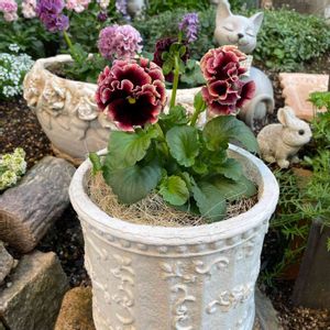ワインレッドのドラキュラ様🍷 妖艶な感じでドキドキなパンジー。 少しづつ蕾も上がって来てます!