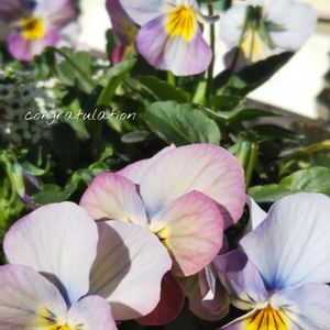 チームブルーの花友さん まんまドーラさんへ❤️ お祝いpicです💕 2000picおめでとうございます❗️ 私の大好きなニュアンスカラーのビオラさんでお祝いさせて頂きます❤️