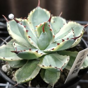 おはようございます☀ アガベ☆吉祥冠錦 真っ白い子株も成長が遅いけど少しは大きく成ったかな🤔