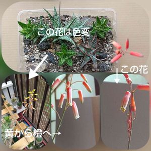 💚❤️咲きました❤️💚 育てているアロエの花が、咲くのは初めてで、嬉しい😃💕です 違う色の花かと思いきや… 黄色から、徐々に橙色に変化。 ちと残念なり😓