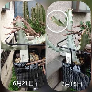 🤍え!こわっΣ(・ω・ノ)ノ💦🤍 ち、ちみ…君、いつの間に😲 スゴい子だなぁ➰驚 三週間余りで、腕一本生える⁉️ 身長も伸びてるけど~💦 人知を超えたパワーの持ち主 トウダイグサ科 ユーフォルビア属 ホワイトゴースト👻