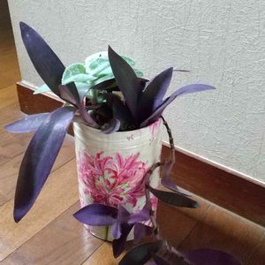 👉️自作鉢👈️寄せ植え チョッと派手な鉢になって… 似合うか心配だったけど、 紫色の大きい葉が、引き立っています⁉️ ツユクサ科 トラデスカンチア属 白絹姫 紫御殿