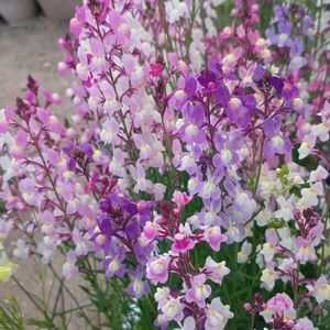 🍀おはようございます🍀 今年もこぼれ種からのリナリアが あちこちで咲いています♬ 赤や白、ピンク、紫、黄色など カラフルです(✿ ♡‿♡) ④⑤はこぼれ種からのペチュニア🤍💜 たくさん咲き始めました♬ 発芽した小さな新芽🌱を 鉢やプランターに摘んで並べて… 毎年同じ事やってます(笑)😁🤭 まだ地植えにしたのもありますが そちらは蕾が見えてきたばかり😀