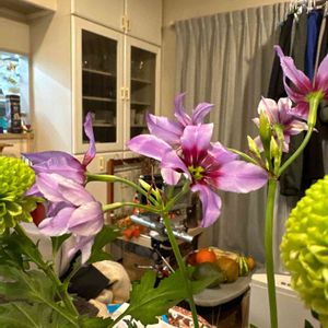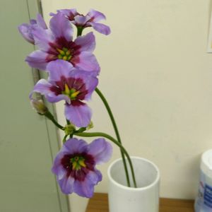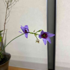 孫からのプレゼントのお花さんですが、名前がわからないので知っている方教えてくださいね🙇♀️ 名前が分かりました♪(๑ᴖ◡ᴖ๑)♪✨✨ ◎ リューココリネさんです😃💜 名前教えて下さりありがとうございました🙇♀️💖💜 🏷️ 愛しの紫