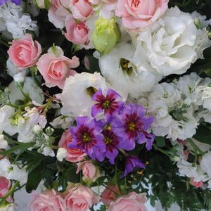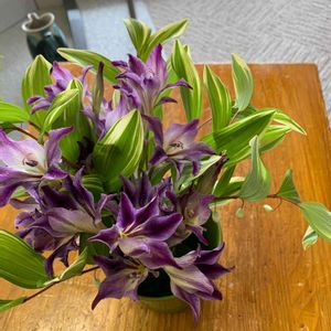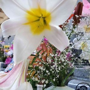 会社帰りの大通りにあるお花屋さんの入り口にて。 名前の自信が無いのですが、Googleさんは「リューココリネ」と言ってました。 正しい名前がお分かりの方、ご指摘いただけるとありがたいです🙇