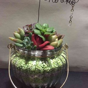 先日初寄せ植えした多肉ちゃん😊 ワイヤーアートの作家さんに名前を作っていただき、サンキャッチャーをつけて、飾ってみました! 転勤になる職場の方へのプレゼントです✨ 喜んでくれるかな😊💕 喜んでくれたら嬉しいな🌹 んー…。写真の撮り方を覚えたい…😭
