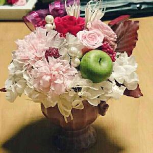 贈り物にドライフラワーを添えて ラッピングしてみました(’-’*)