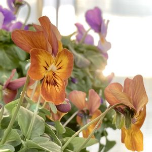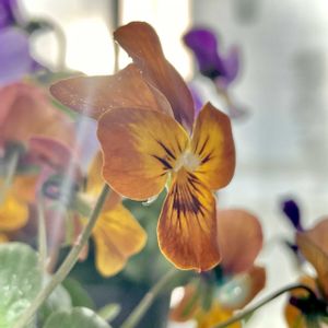 種から育てたビオラ コリーナテラコッタ 花がら摘みも大変になったのでこのあたりで終わりかな✨ たくさん咲いてくれてありがとうって感じですね😊