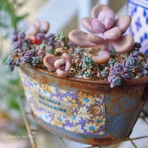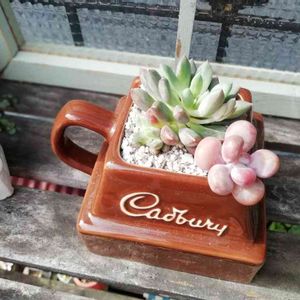 イギリスアンティークのチョコレートカップ☕ ショコラという多肉を植えました❤️ 紅葉したらチョコレート色になるのかな。