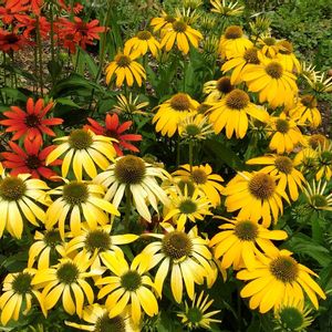 沢山のエキナセアが咲きそろってきました 同じ株を分けたはずなのに、どことなく色の違いが出てるのはなぜだろう?