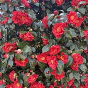 こちらは、新宿御苑入り口前に咲いてた椿 みっちりと赤いのがたくさん❣️
