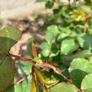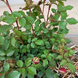 なんと!ミニバラのつぼみが赤く色づいていました❣️ 一番乗りはこの子でした。
