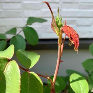 ユエユエフェンのつぼみ♪ さすが、チャイナ系オールドローズ。 遅い剪定だったのに、早くもつぼみを上げてくるとは…。 ドSの私にはピッタリ!