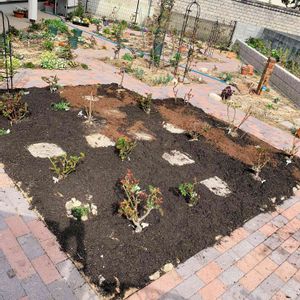 友人がラバグルートをプレゼントしてくれました。この子、枯らしてしまったので、今度こそ!です。 日当たり風通しの良い所を選んで植え付けました。 この後もう少しバラの土を足しました。