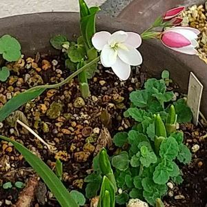 3年目のヘスペランサ・ククラータピンク咲きました🌸✨右側➡️ 左⬅️は今年お迎えしたキアネラ・アルバピンクです🌸 外側がピンクで中が白くて似てますよね♬ 葉っぱ葉っぱは全然違いますけどね💦 ⬅️は芝生みたいな細い葉っぱで➡️は水仙みたいなシュッとした葉っぱです🌿 ヘスペランサが咲くか不安で探したら似てる子を見つけてお迎えしました(*´艸`)ウフッ♪ 両方とも南アフリカの球根です💖 消えて無くて良かった〜 «٩(*´ ꒳ `*)۶»✨