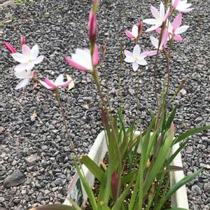 ヘスペランサ ククラータ ピンク💕 咲きましたよ~\(^o^)/ お花も花びらも可愛い~❤ 花茎、多分、5本です。 蕾や花びらの外側は濃いピンク、内側は、白です。 午後咲きなので、会社から帰宅した18時頃でも こんなにキレイでした。